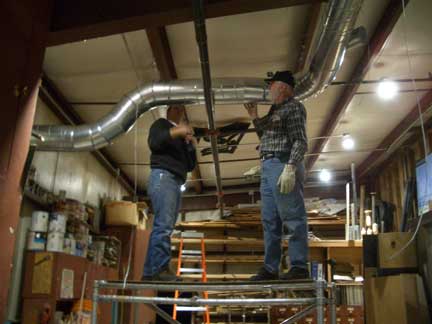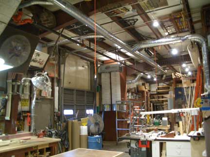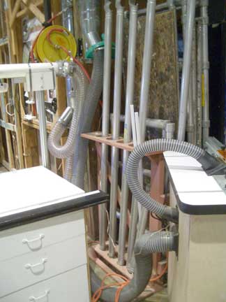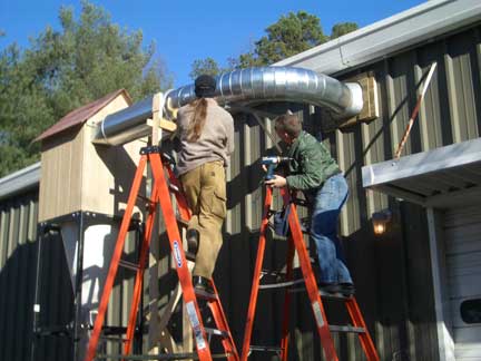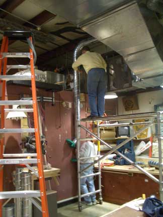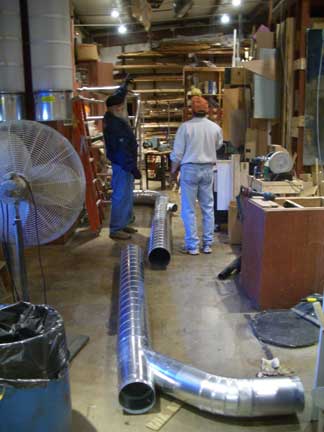 The specifications and design of the system has been the responsibility of our "Guru in Residence," Gene Funderburk. He worked closely with the staff and engineers at Oneida Air Systems (the primary suppliers of equipment for the installation) to determine exactly what we would need. He finally determined that if we did the installation ourselves with only the need for the electrical wiring to be supplied by the University, we could get the system we wanted and needed.