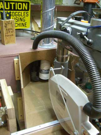 Dust collection box for radial arm saw.