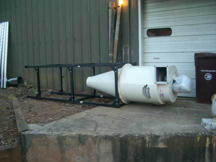The cyclone joined to the custom stand.