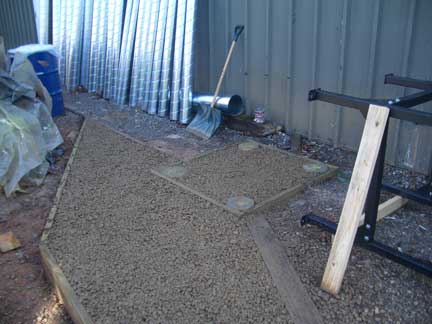 Footings for the motor stand outside of the shop.