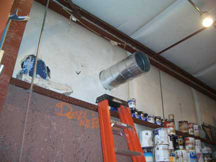 Hoisting (with a "come-along", the HEAVY filter unit into place.