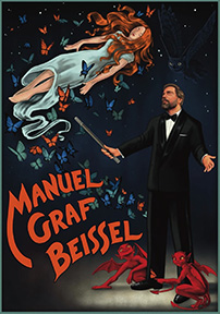 The Image of the sagacious magician looking knowingly at the viewer with small imps whispering the enduring secrets of magic in his ear has been often used on magician's advertising posters. This image of the magician getting the "secrets" from these underworld demi-devils apparently started with Harry Kellar (on his 1894 poster). Leon Hermann (nephew of Alexander) who overlapped the career of Kellar seems to be the first who copied the whispering imps. Not only did the Great Hermann include them, he used more imps! Several of the imitators have been satisfied with a single informant but the standard seems to be two - one per shoulder. Keen's informant is a great deal older - and may be Mr. Scratch himself. The poster that is probably the most famous and the one most often directly copied is the splendid Kellar poster. Thurston seemed to like the idea so much he used it three times, Raymond had two slight variations. It was used once on a book cover. Although many have directly copied Kellar's imps (myself included), the wee devils show up with tails, wings, pointed ears and in the company of other underworld creatures. Banachek has updated the imps as space aliens. I do not pretend to be a scholar on the subject of magic posters. I simply have been intrigued by the proliferation of the whispering imp images and have attempted to locate as many as I could. I am indebted to Jim Steinmeyer, James Hamilton, Scott Wells and others who have written thoughtful and helpful eMails assisting with the proper sequencing of these posters. The accumulator wishes to ESPECIALLY thank the extraordinary contributions made to this archive by the meticulous research by Eric Swenson. What follows is my accumulation of the variations on the theme (261mages!) |
